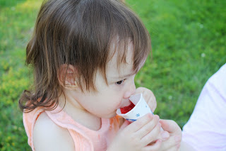 Nora had mixed feelings about the bounce house, but her feelings about the snow cone were clear as she kept coming back for more.